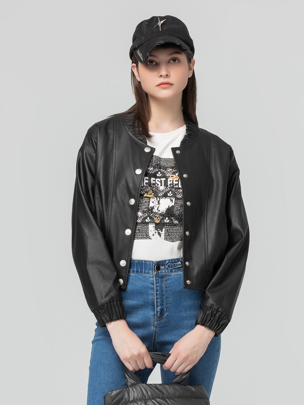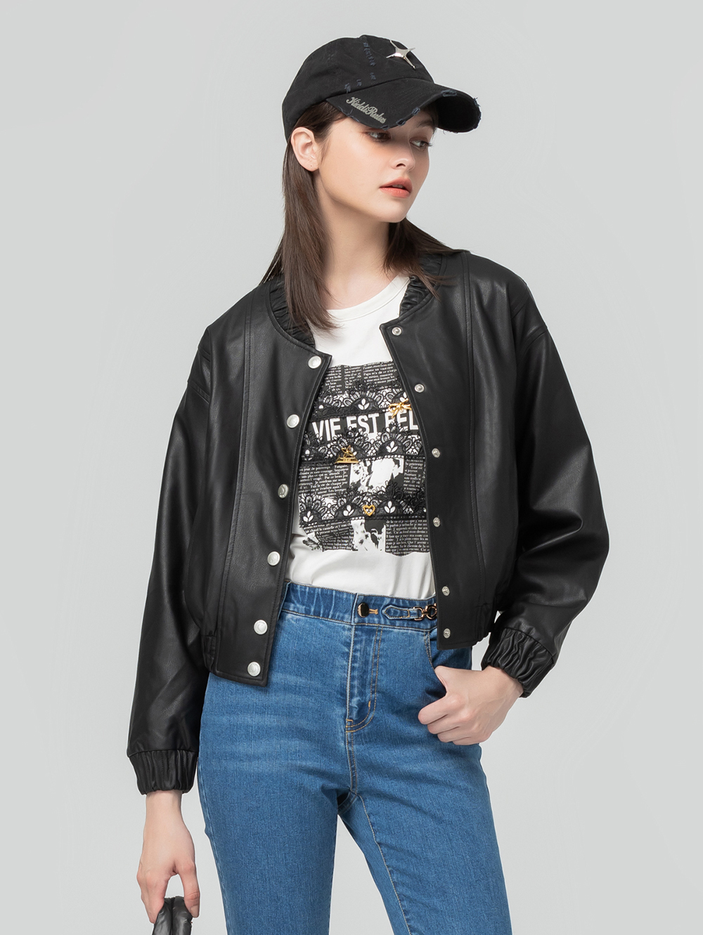 abito金屬釦皮革棒球外套