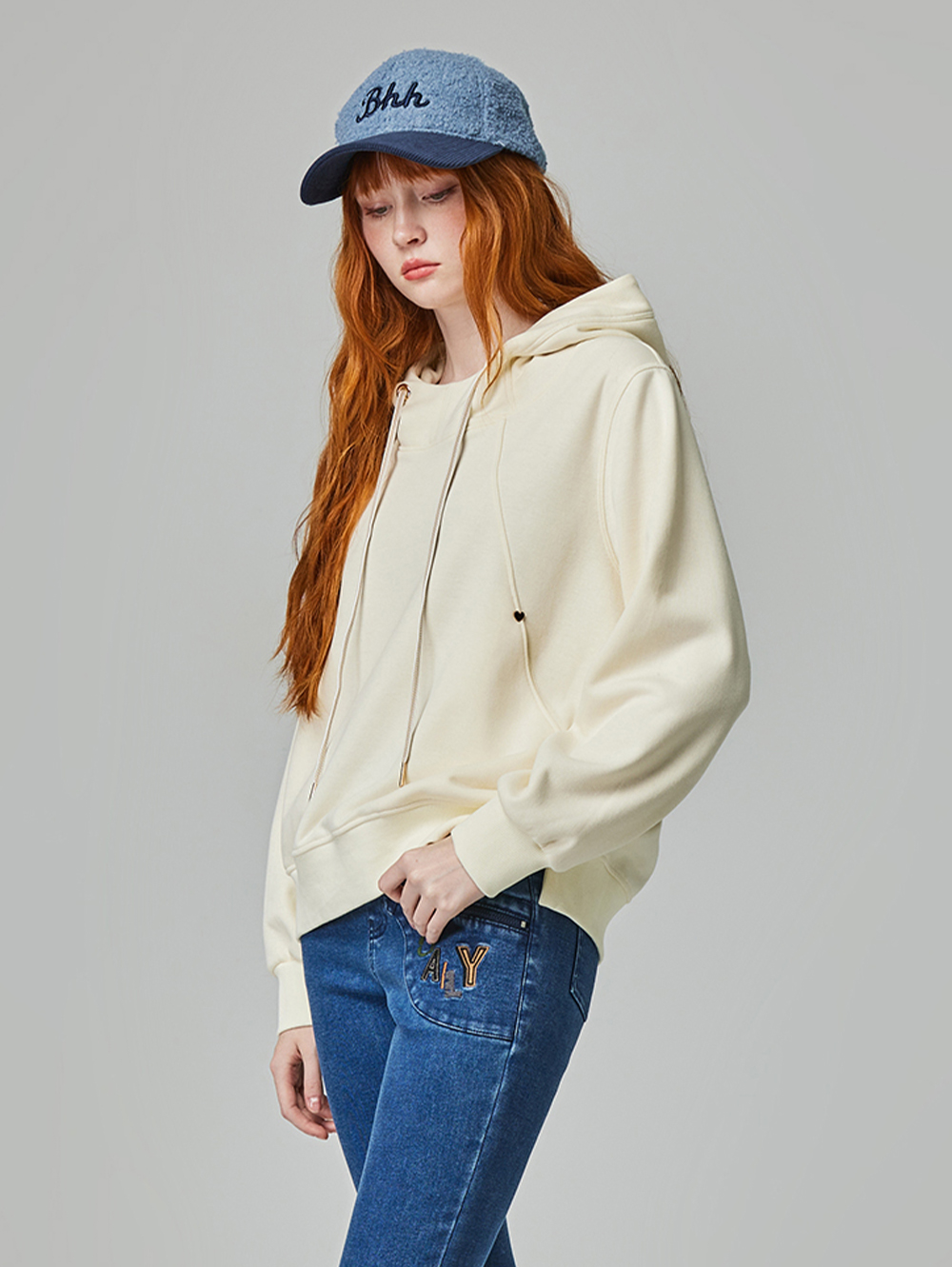 *內刷毛保暖面料 *金屬愛心裝飾釦 *連帽抽繩設計 *落間拉克蘭袖版型