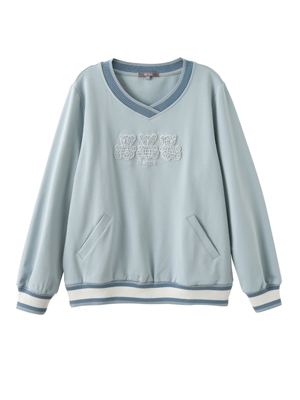 *羅紋加強領、袖口彈性與耐用 *可愛立體繡熊熊圖 *可愛日常百搭款 *棉質舒適面料