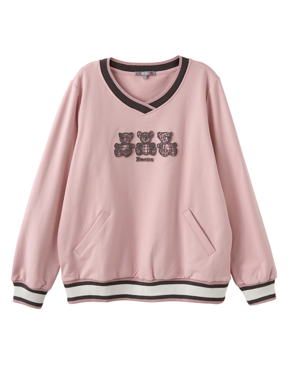 *羅紋加強領、袖口彈性與耐用 *可愛立體繡熊熊圖 *可愛日常百搭款 *棉質舒適面料
