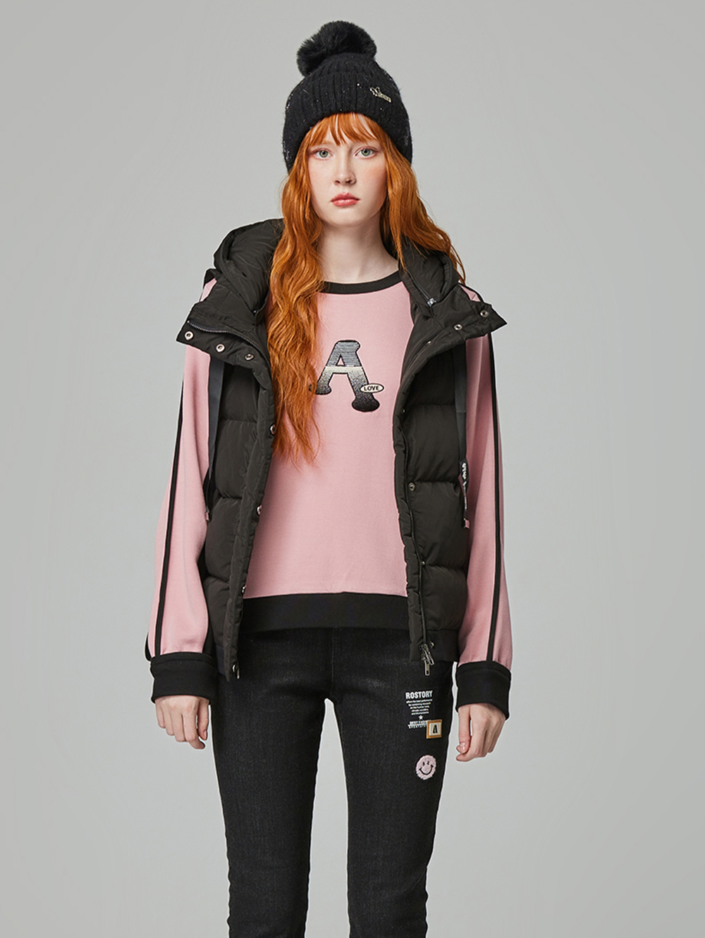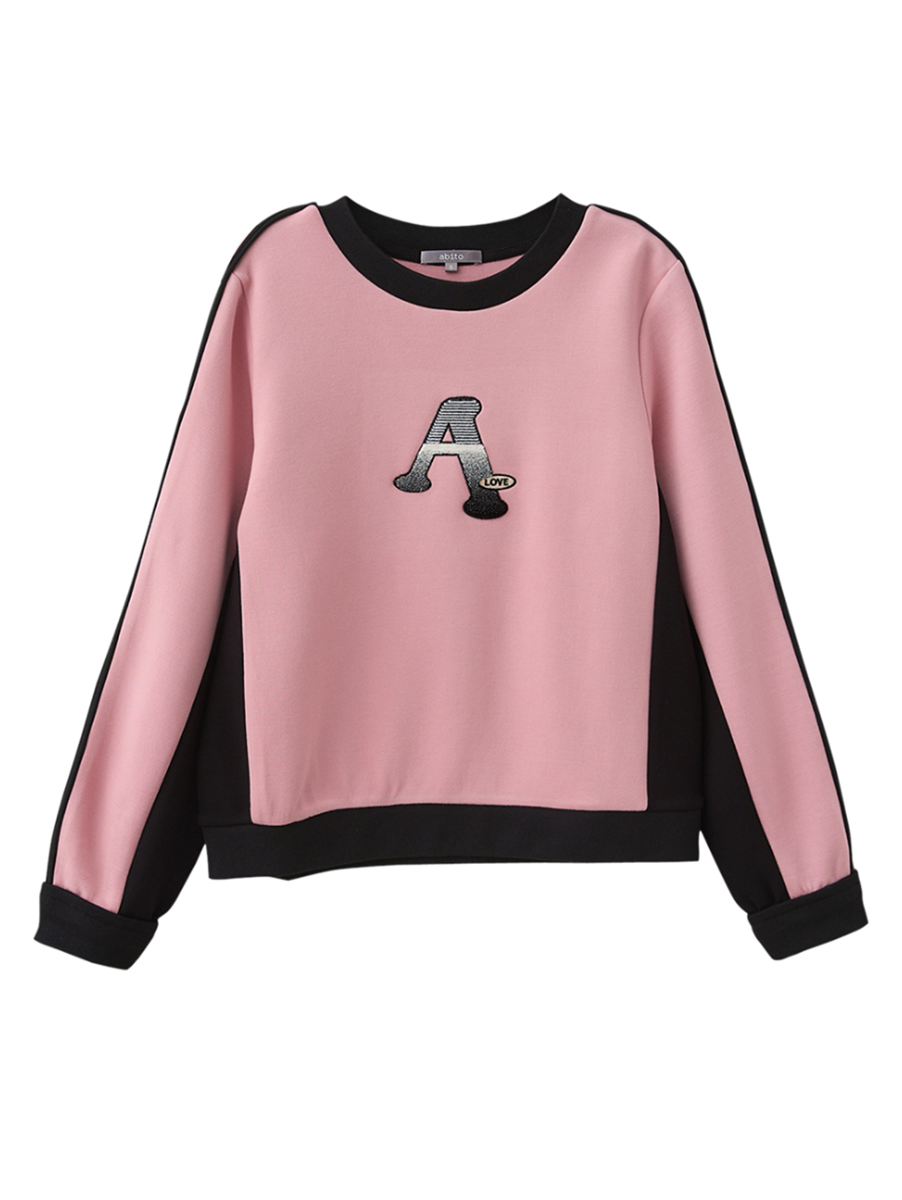 *圓領羅紋加強領口彈性與耐用 *特殊工藝,刺繡亮片字母 *跳色拼接造型 *柔軟面料