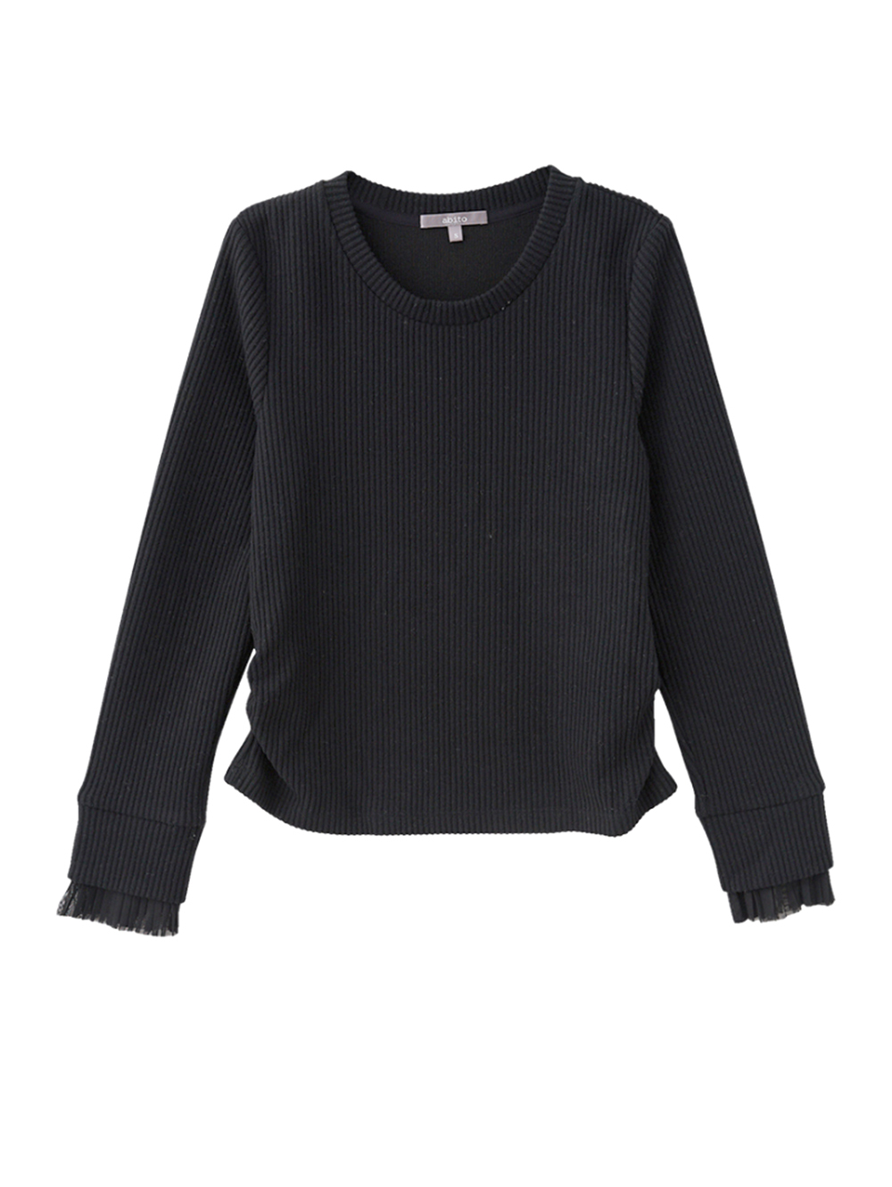 *修身版型,修飾身形比例 *袖口拼接網紗造型 *適合單色或疊穿風格造型 *柔軟布料,親膚舒適