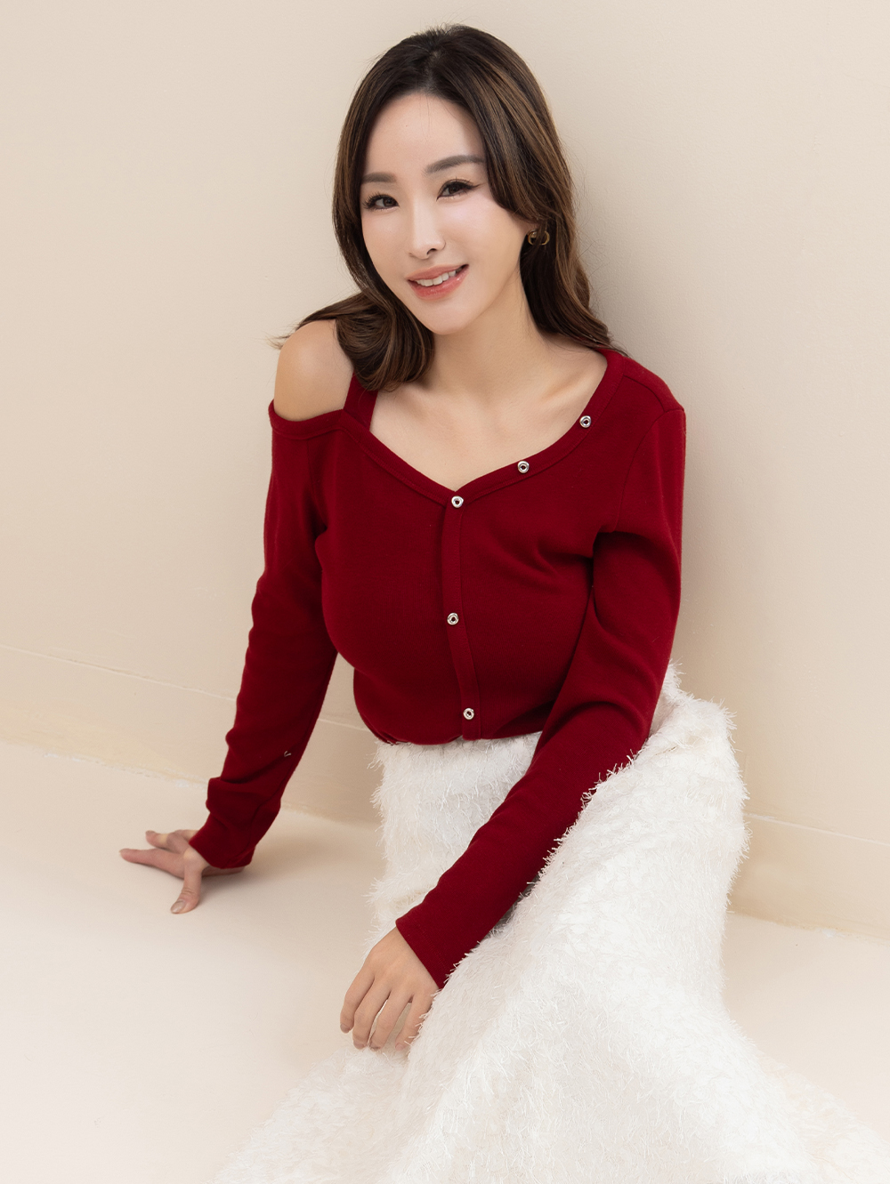 *圓形裝飾釦增添細節 *V領挖肩版型修飾線條 *日常搭配、正式場合皆宜 *柔軟彈性親膚面料