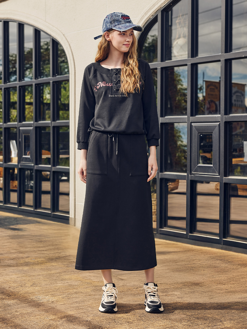 abito高腰抽繩大口袋長裙