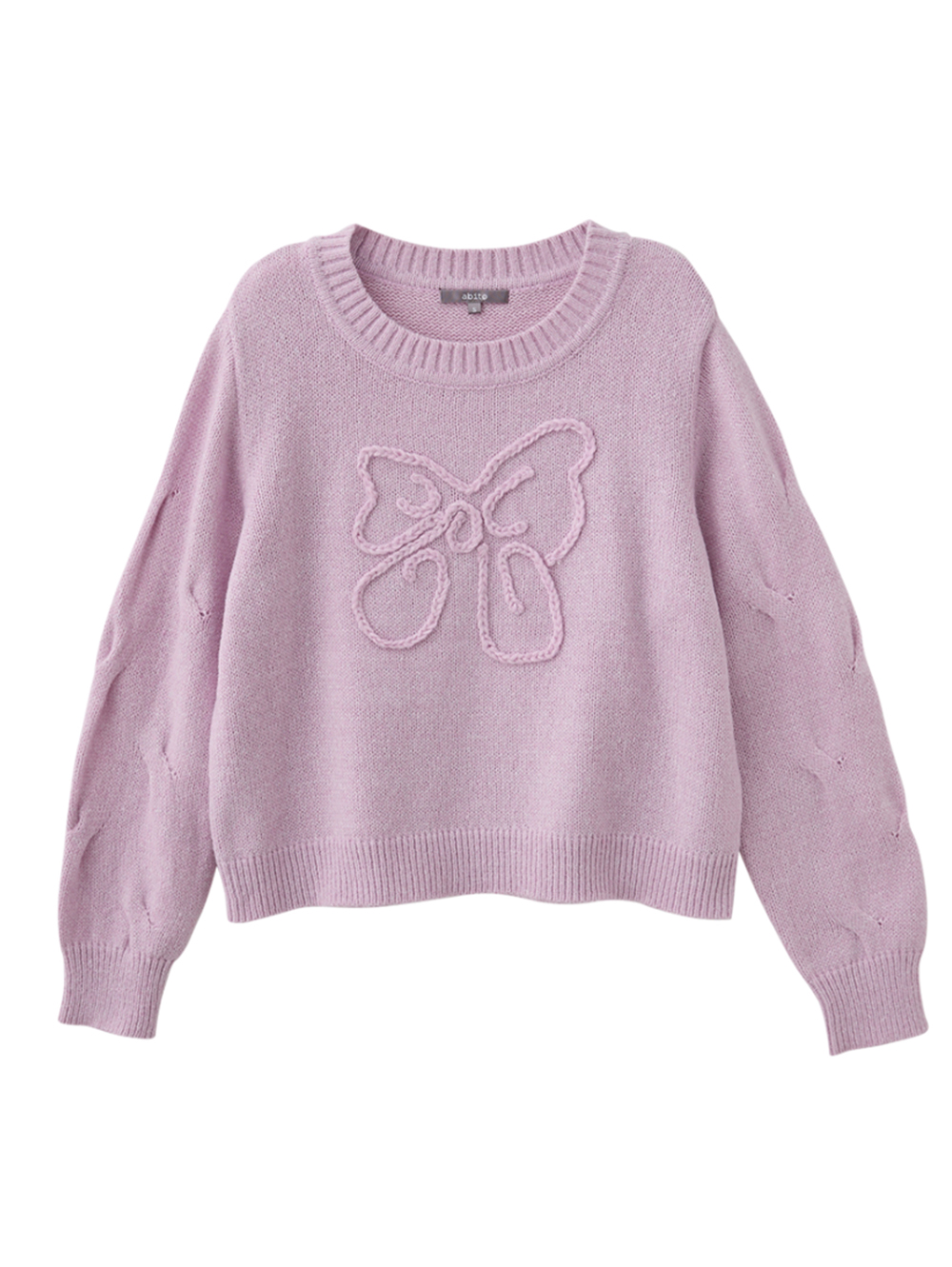 *短版版型,修飾身形比例 *可愛立體蝴蝶結緹花造型 *面料柔軟舒適 *羅紋加強領口、袖口彈性與耐用
