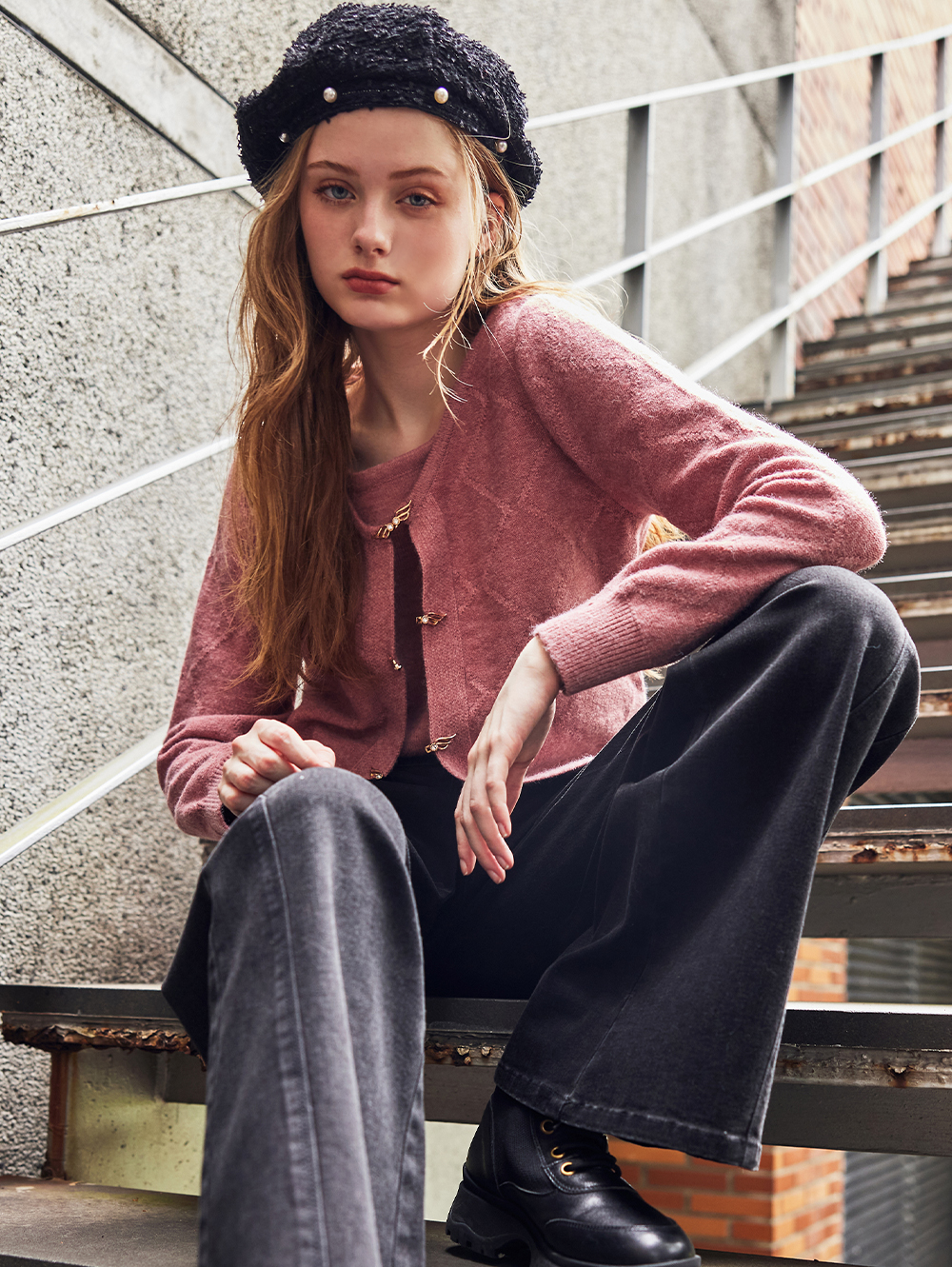 *菱形格紋紋路 *金屬裝飾細節 *羅紋下擺縮口設計 *柔軟舒適面料