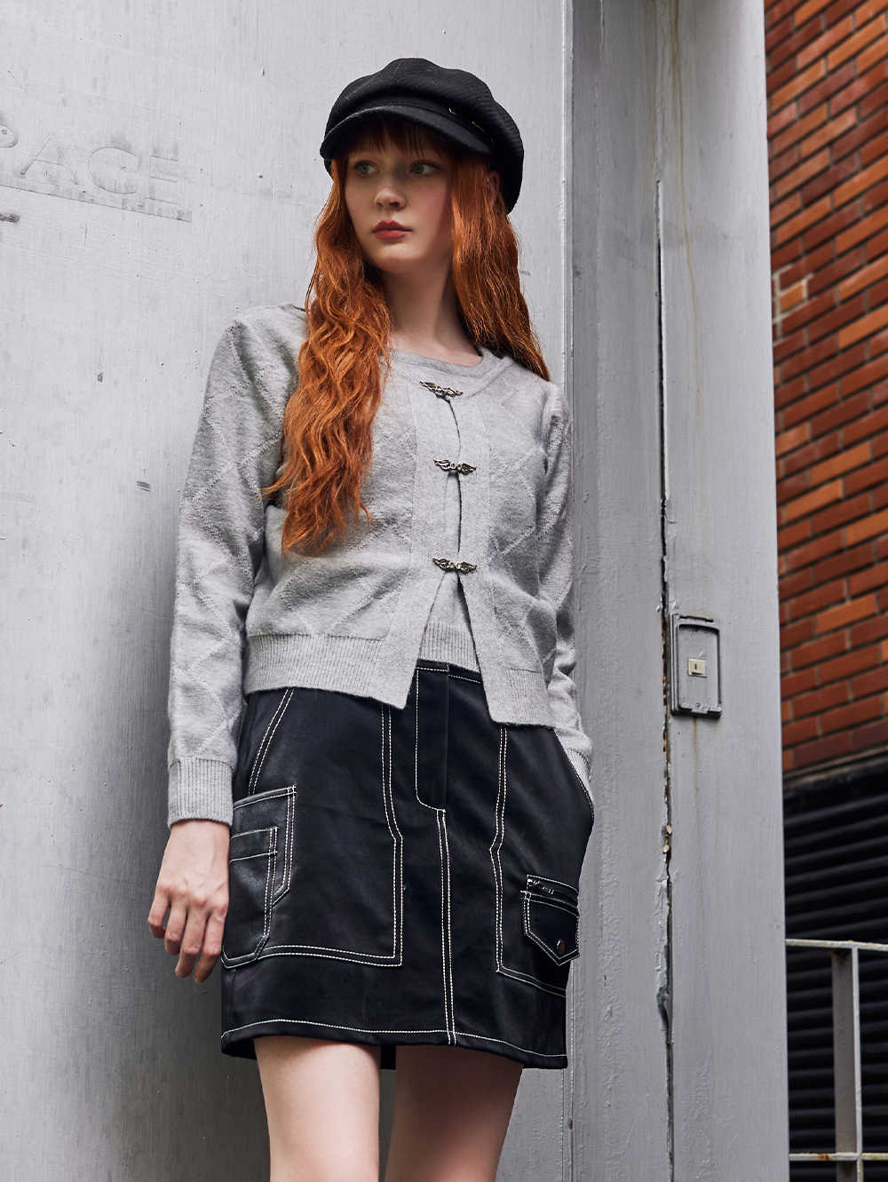 *菱形格紋紋路 *金屬裝飾細節 *羅紋下擺縮口設計 *柔軟舒適面料