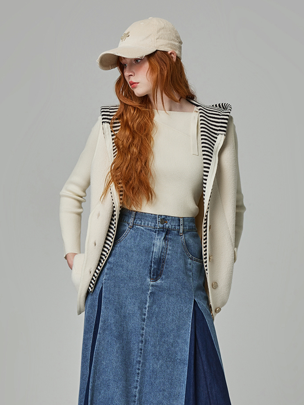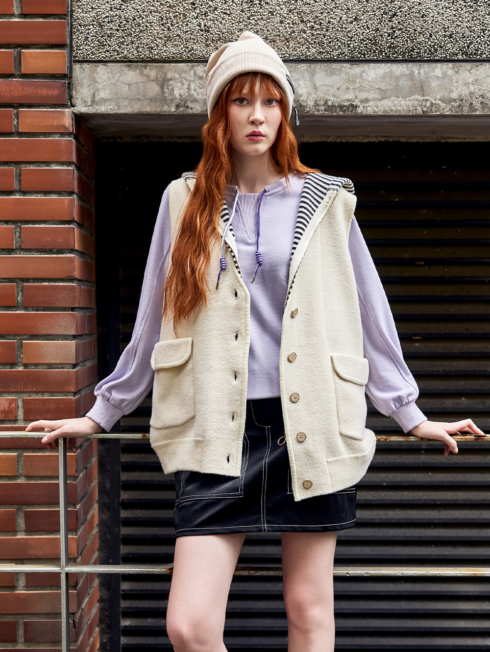 *連帽條紋,增加穿搭層次感 *柔軟舒適親膚面料 *適合秋冬穿搭 *金屬釦細節