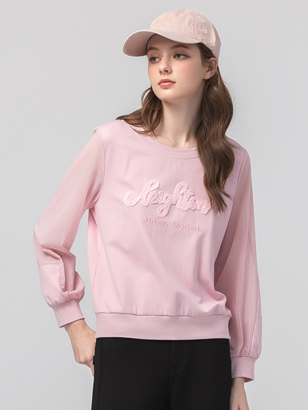 *精美立體刺繡 *舒適版型棉質上衣 *網紗面料拼接袖子 *羅紋圓領加強彈性及耐用