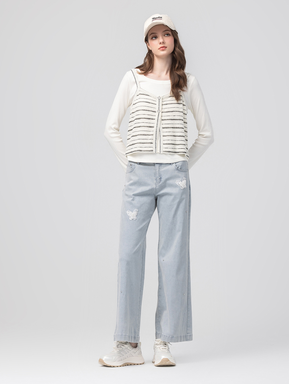 *精緻繡花蝴蝶亮片 *高腰雙釦腰頭 *寬鬆舒適版型拉長腿部線條 *棉質柔軟面料