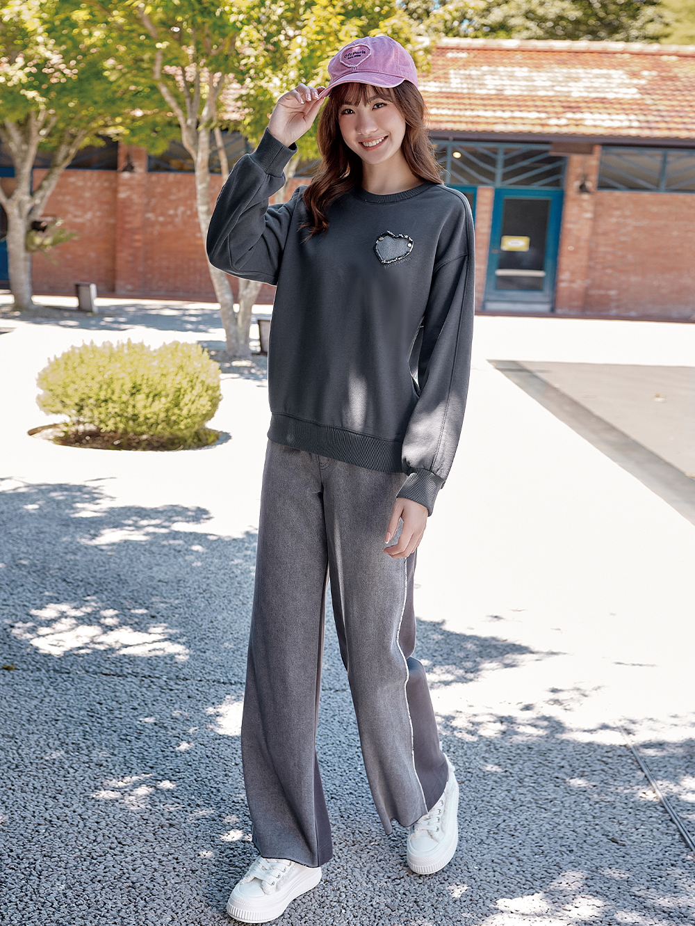 DITA韓系牛仔拼接運動寬褲