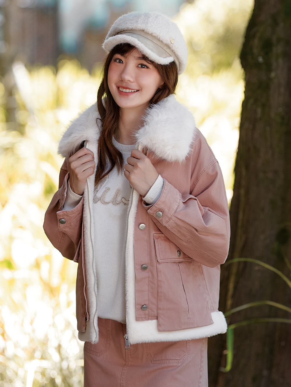 DITA甜酷感剪接毛絨寬版外套