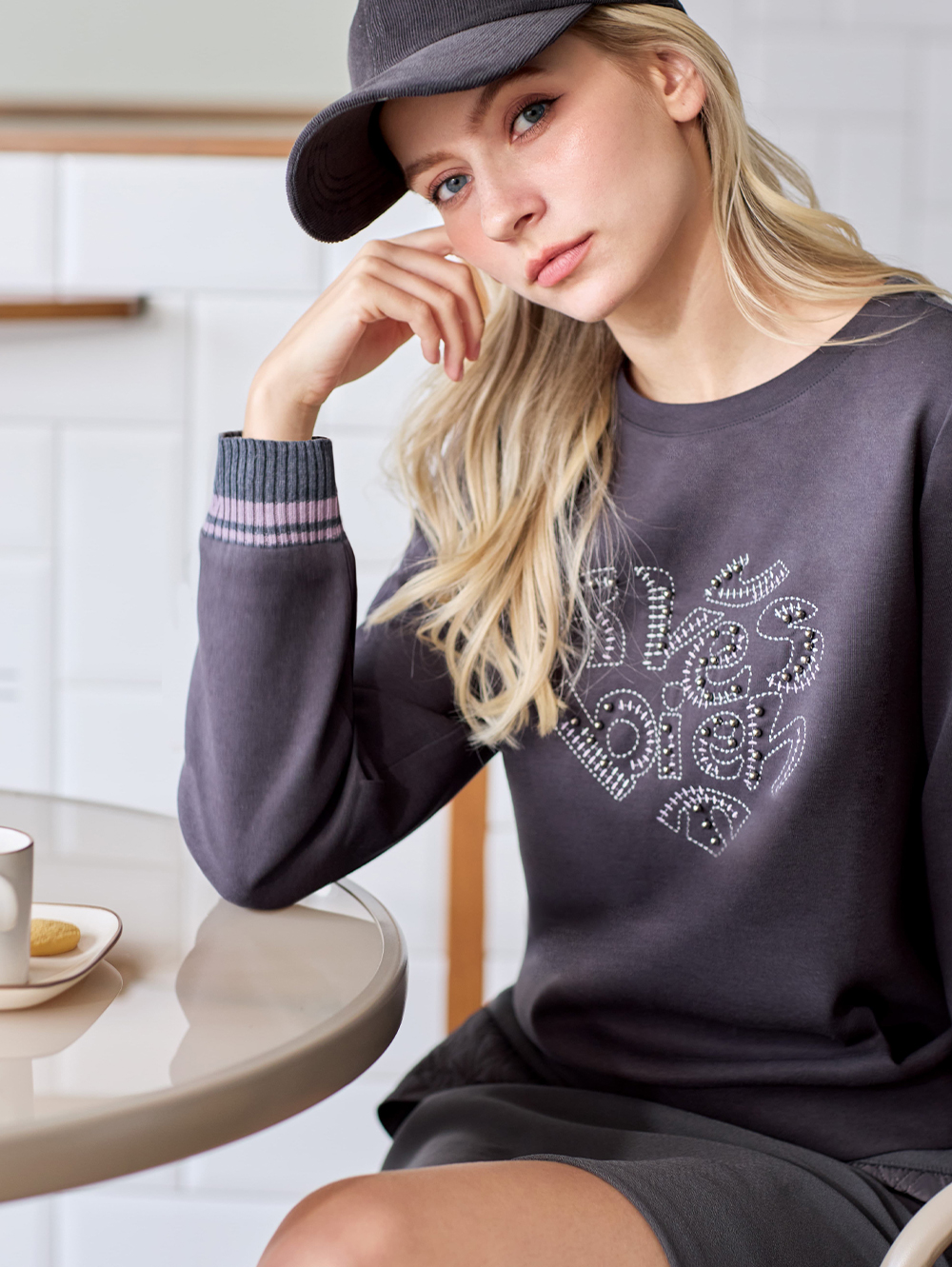 邊框電繡與立體縫飾綴層次工藝, 配色縮口螺紋俐落好穿搭。