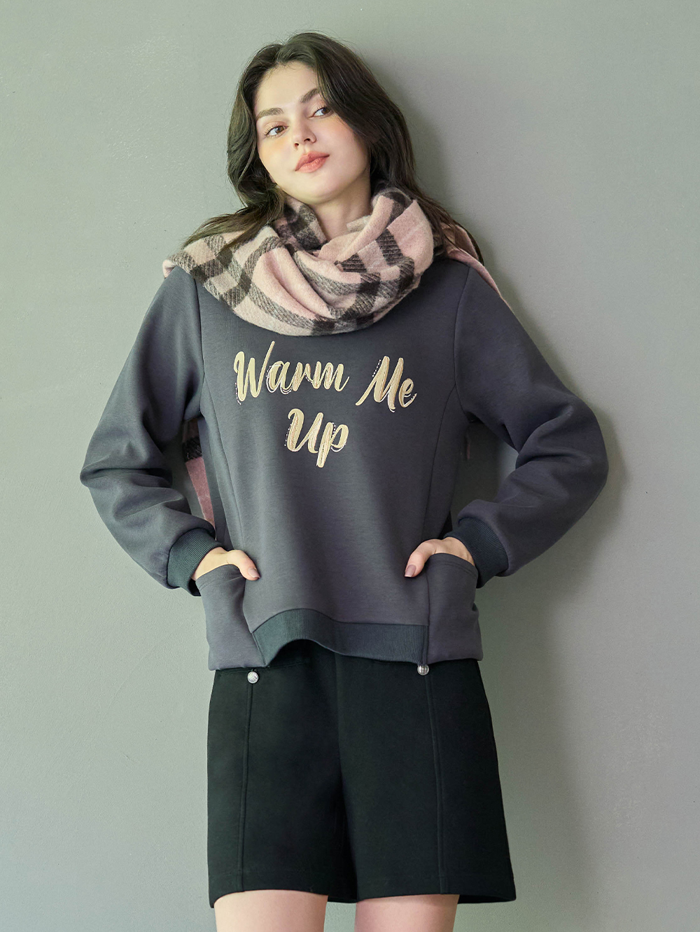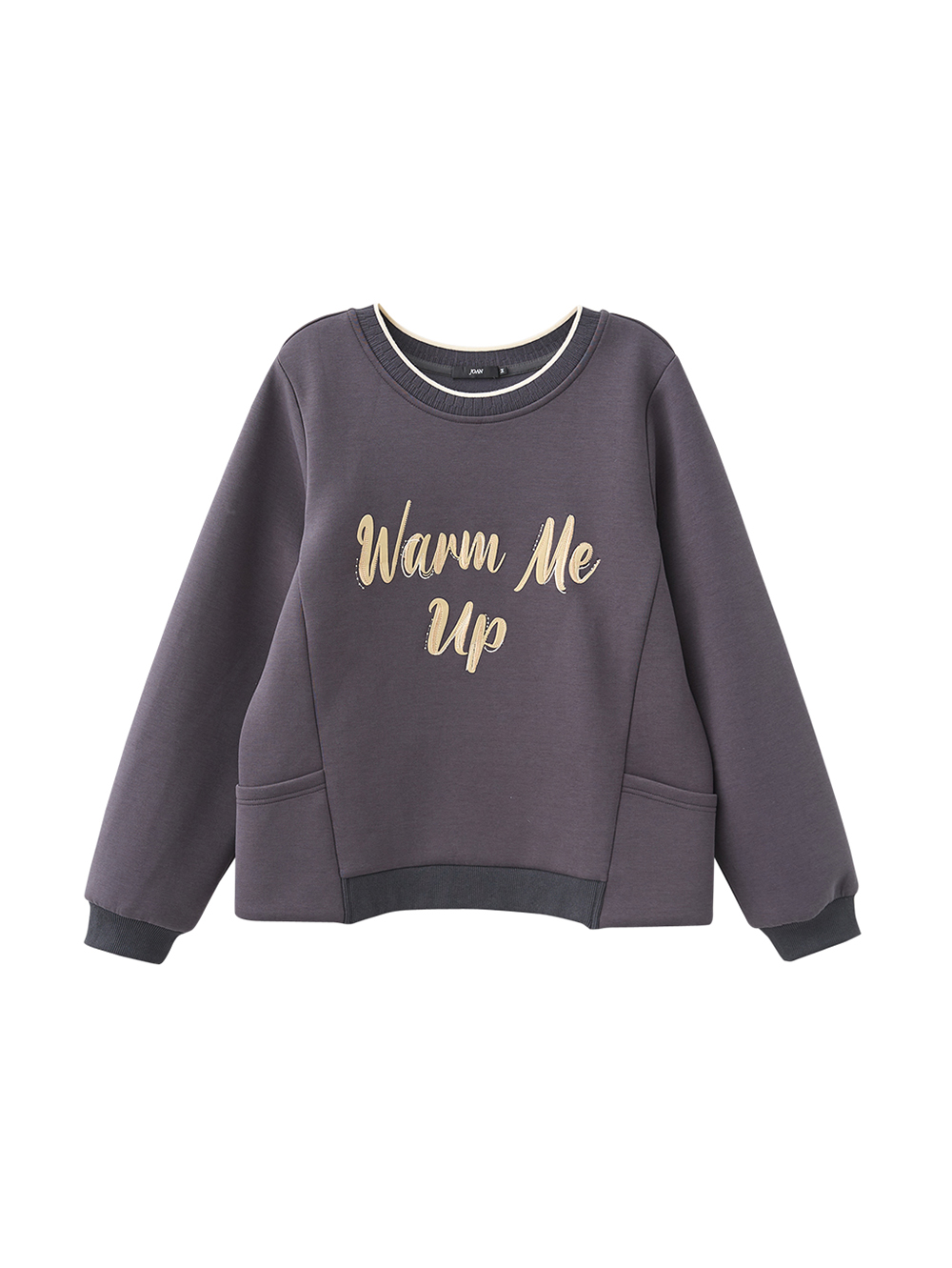 柔軟內磨毛搭配厚實磅數, 穿著舒適又溫暖。標語字樣點綴, 簡約中帶點俏皮感, 適合日常, 通勤, 居家各種場合。