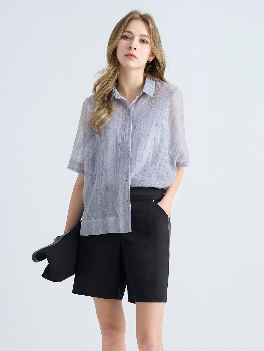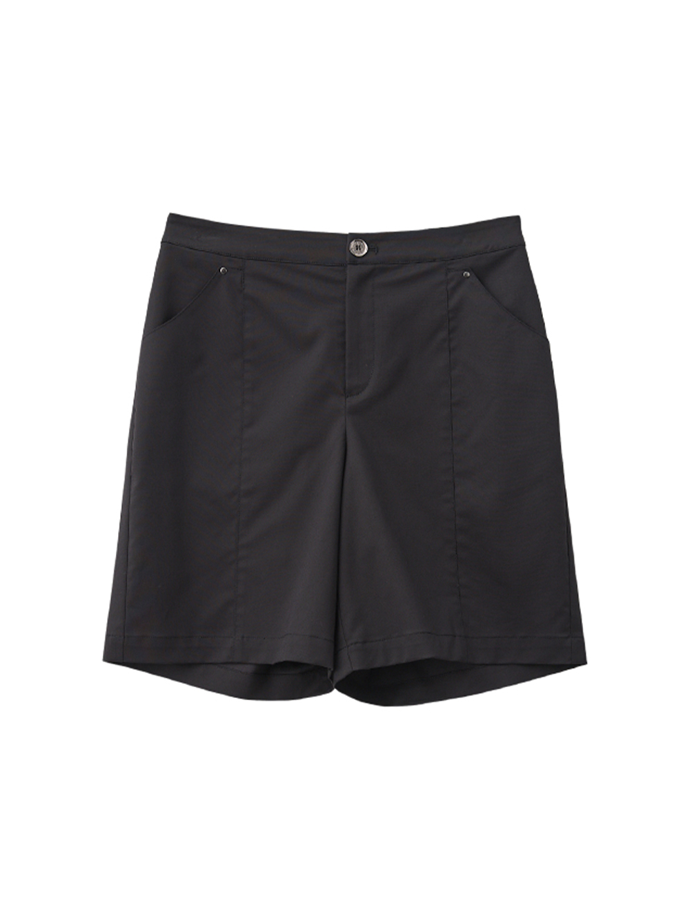 消光霧面的棉質面感, 中線切割設計更顯瘦, 五分褲長輕鬆好穿不悶熱。