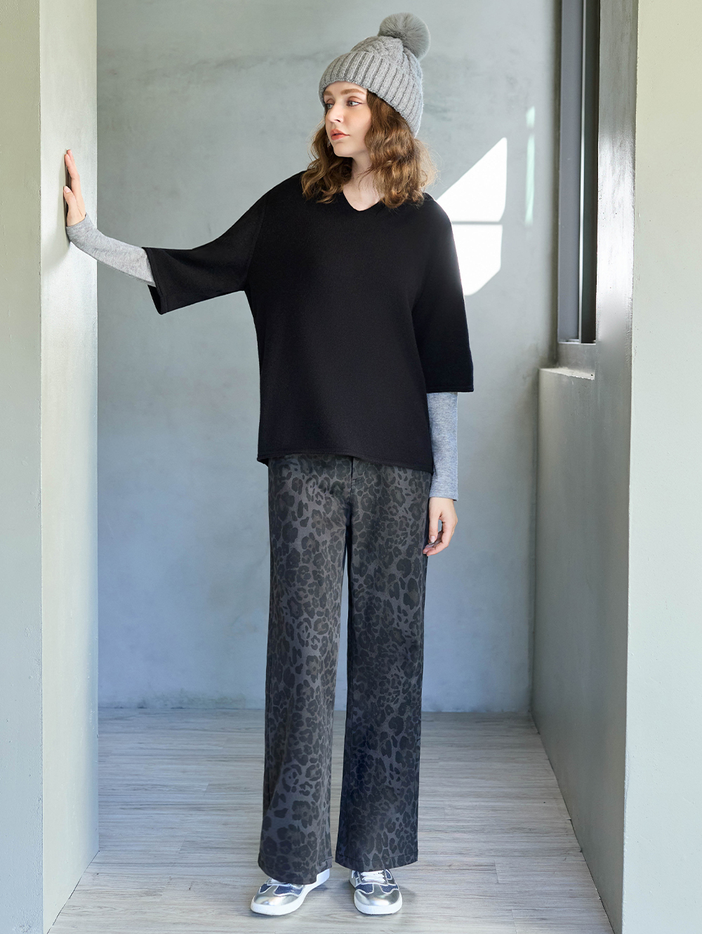 低調中帶有個性魅力的霧面豹紋元素, 與暗紋條紋印花, 搭配彈性組織面料, 兼具舒適與時尚。