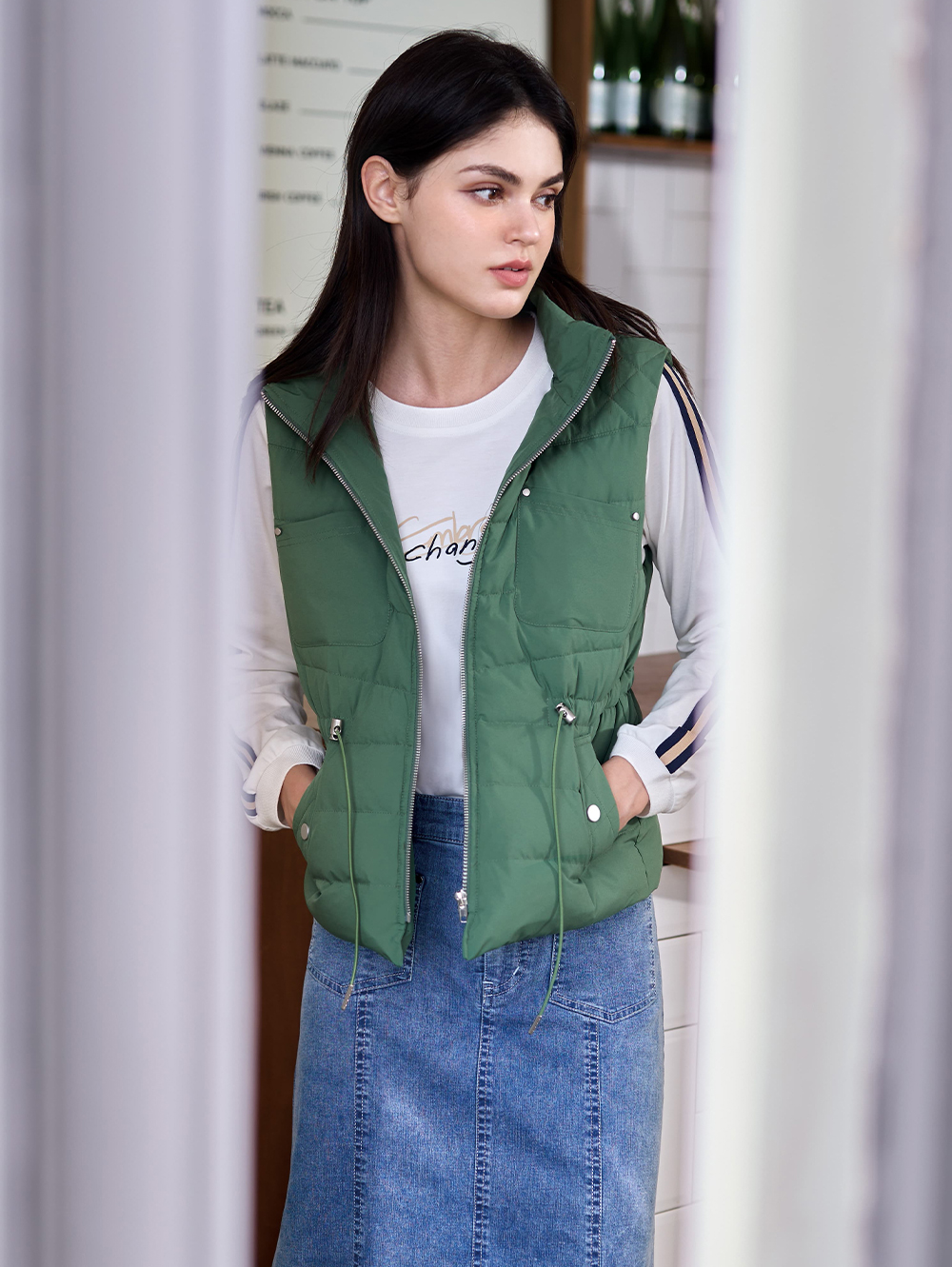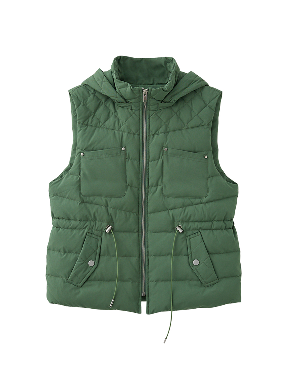 輕盈鴨絨填充, 可調整抽腰設計, 修飾身形更顯俐落。活動式帽子可拆, 隨心搭配滿足不同穿搭需求。