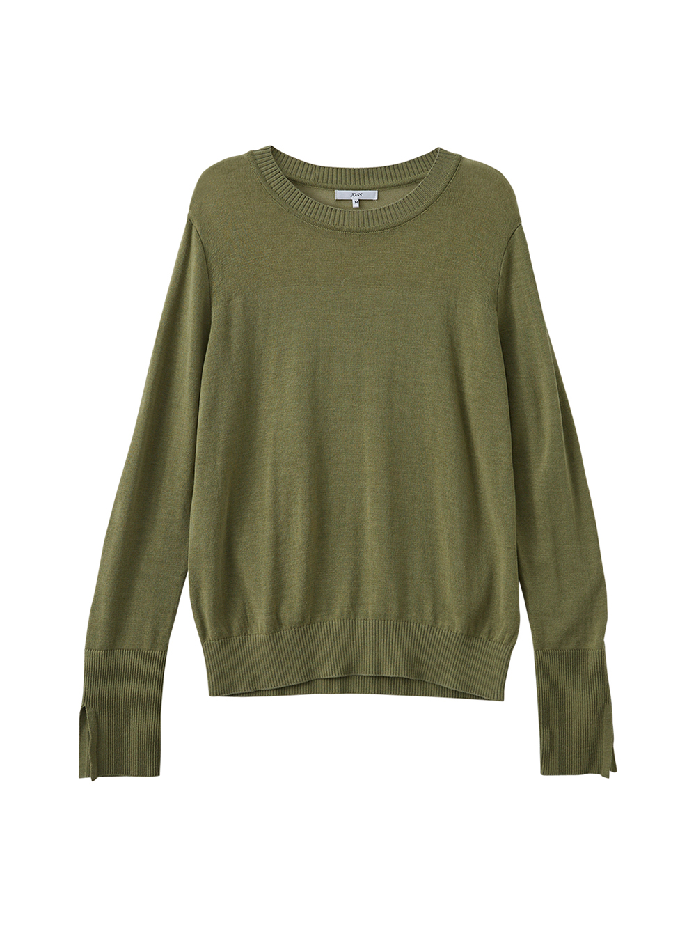 順身不貼身版型, 鎖骨肩膀微透視效果, 讓素面打底針織衫單穿也有特色。