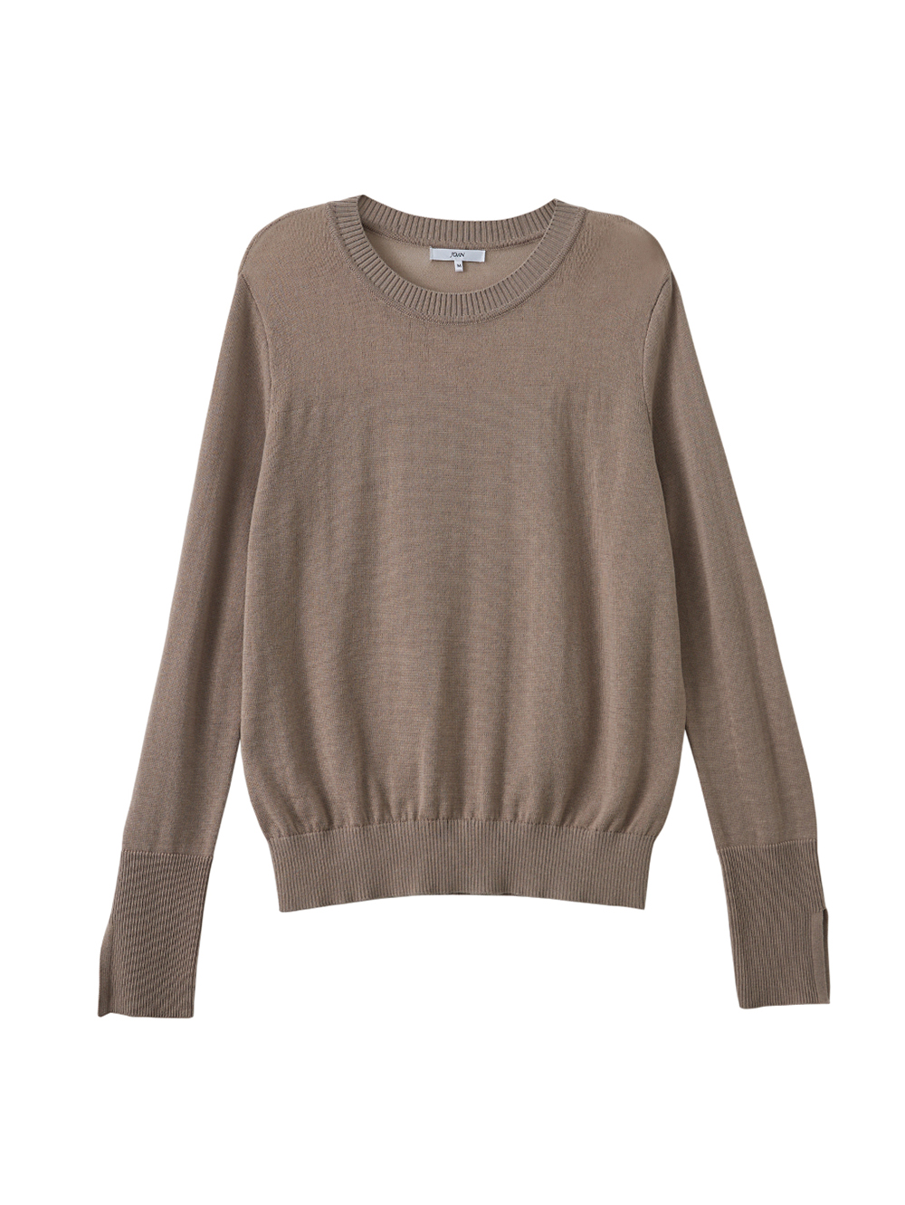 順身不貼身版型, 鎖骨肩膀微透視效果, 讓素面打底針織衫單穿也有特色。