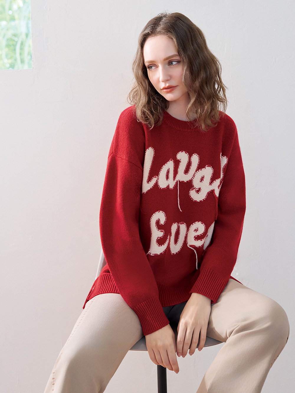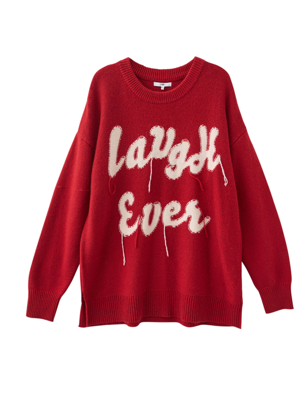 胸前手寫風格字樣繡線搭配自然垂若線尾, 營造慵懶不刻意的隨性風格, 輕鬆落肩版型, 長度修飾腹臀, 可單穿, 與大衣搭配也好看。