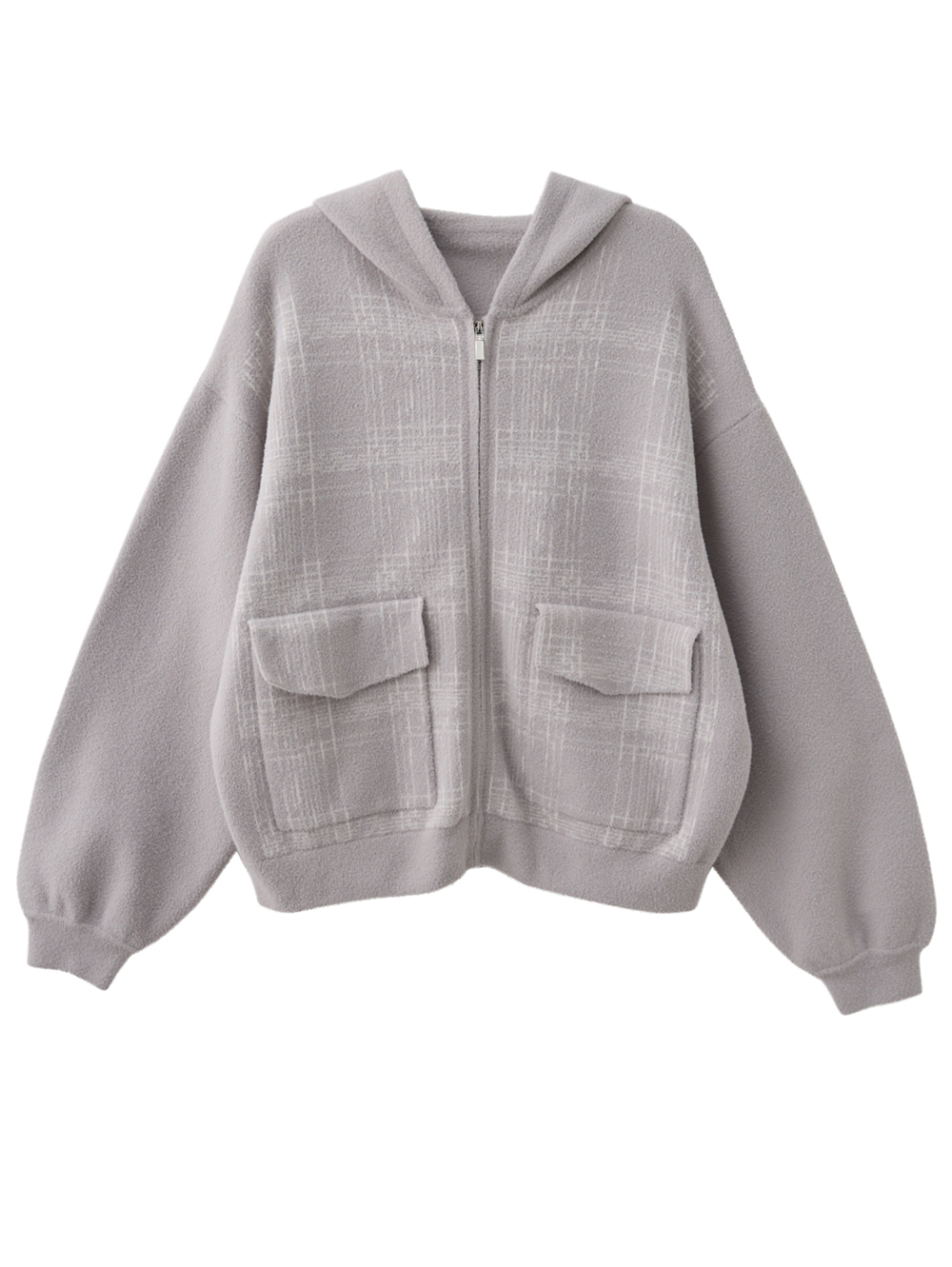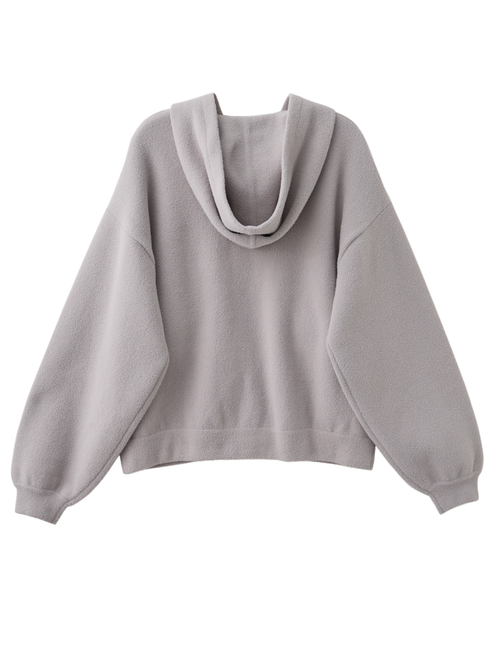 仿羽毛紗材質帶來輕盈蓬鬆首感, 表層毛絨提升溫暖度與親膚觸感, 落肩版型活動自在舒適。