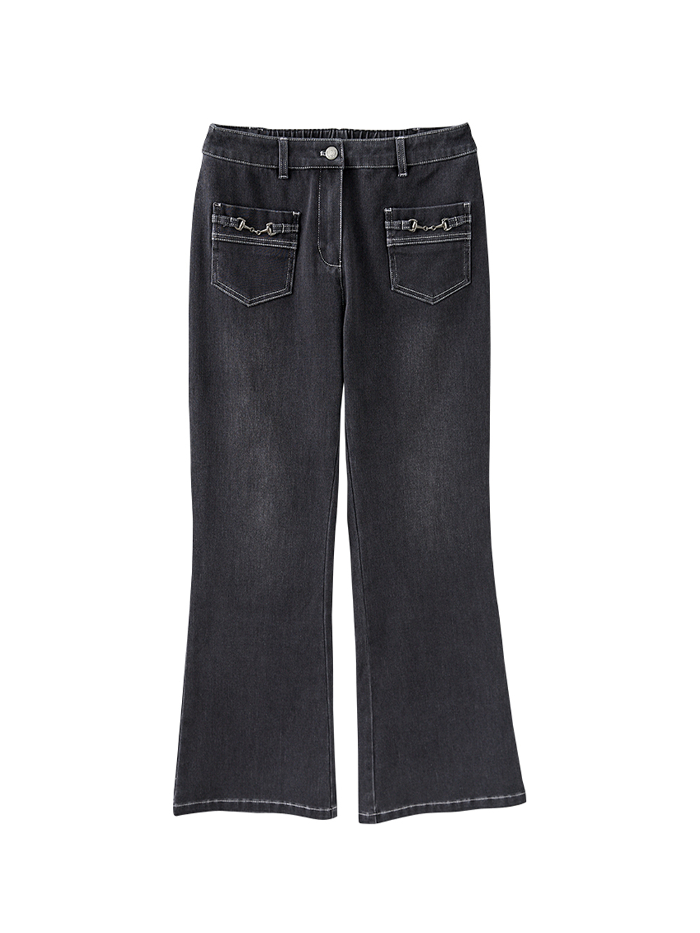 JOAN金屬鍊裝飾微喇叭牛仔褲