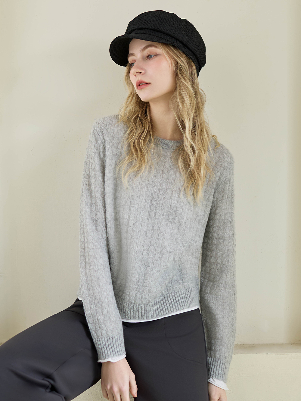 立體簍空織紋, 讓簡約不簡單; 內有親膚T恤襯底, 一件及穿出豐富層次感。