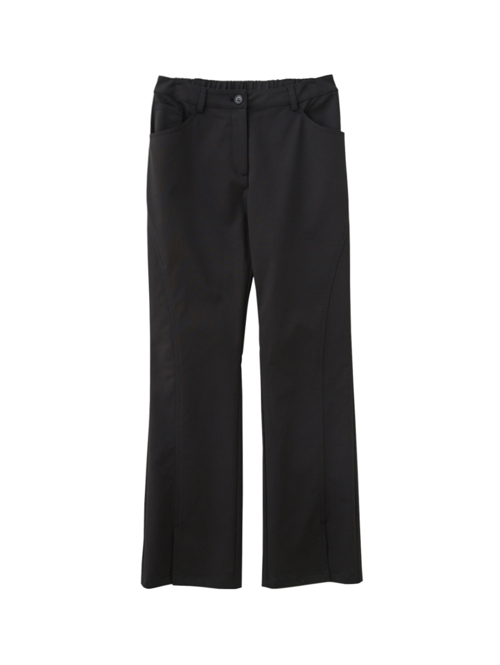 俐落的中腰設計結合微喇叭剪裁, 完美拉長腿部線條, 立體弧形線條巧妙修飾大腿, 搭配褲腳開岔細節增添輕盈與時尚感。