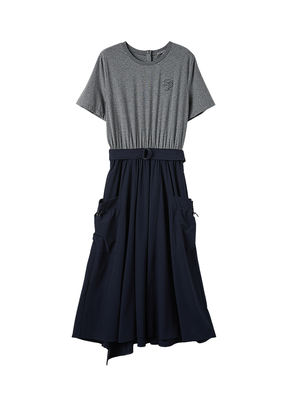 abito假兩件短袖拼接A字洋裝 abito假兩件短袖拼接A字洋裝 abito假兩件短袖拼接A字洋裝
