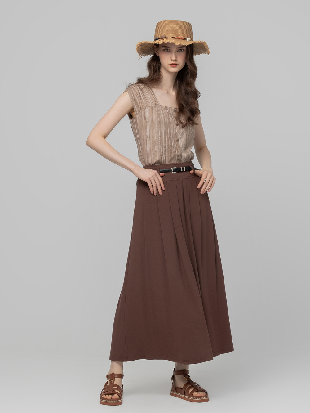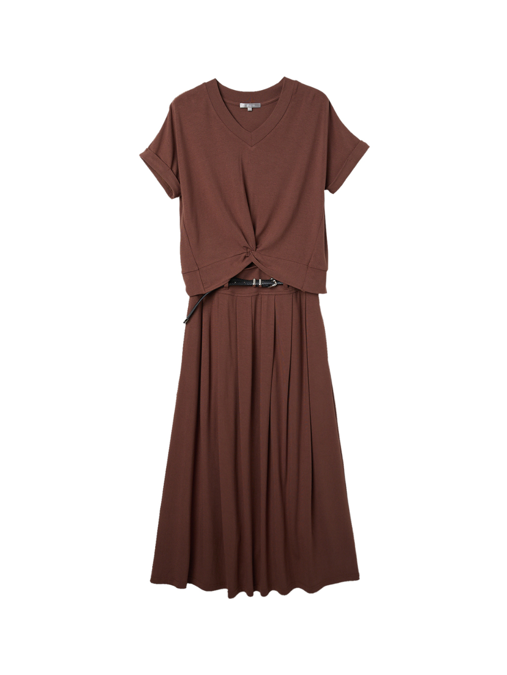 柔軟親膚的布料穿上身完全無負擔,上衣下擺有扭結造型,百褶裙附贈皮帶,能提升腿長比例,成套或是拆穿,多種穿法CP值超高!!