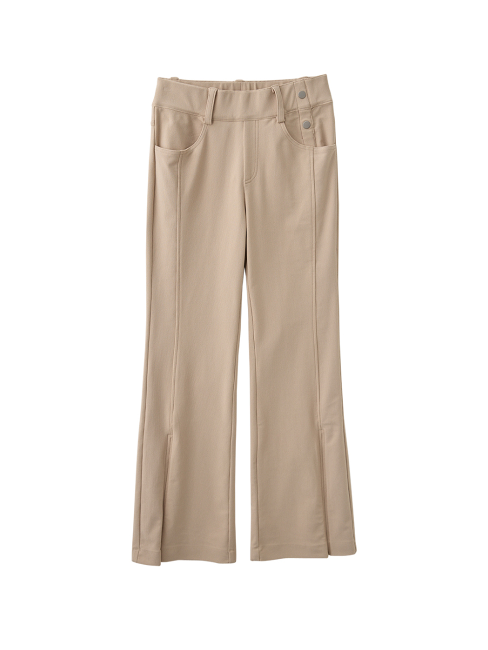 *微喇叭版型修飾線條 *下擺開衩拉鍊可自由調整 *金屬釦細節設計 *面料柔軟親
