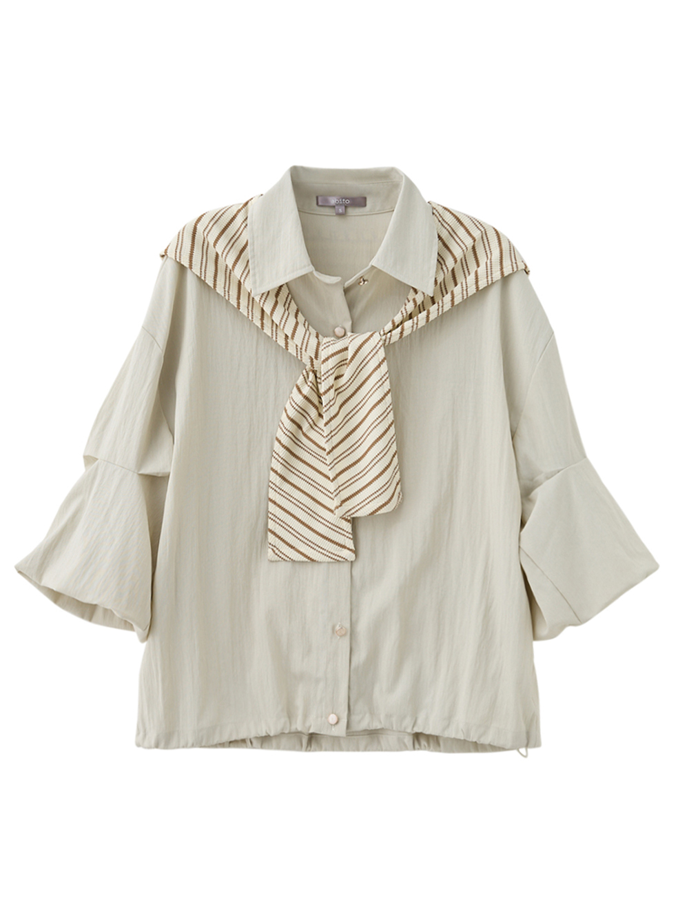 *假兩件式披肩,氣質日常穿搭 *特殊剪裁抛袖設計 *下擺縮口版型 *柔軟舒適面料