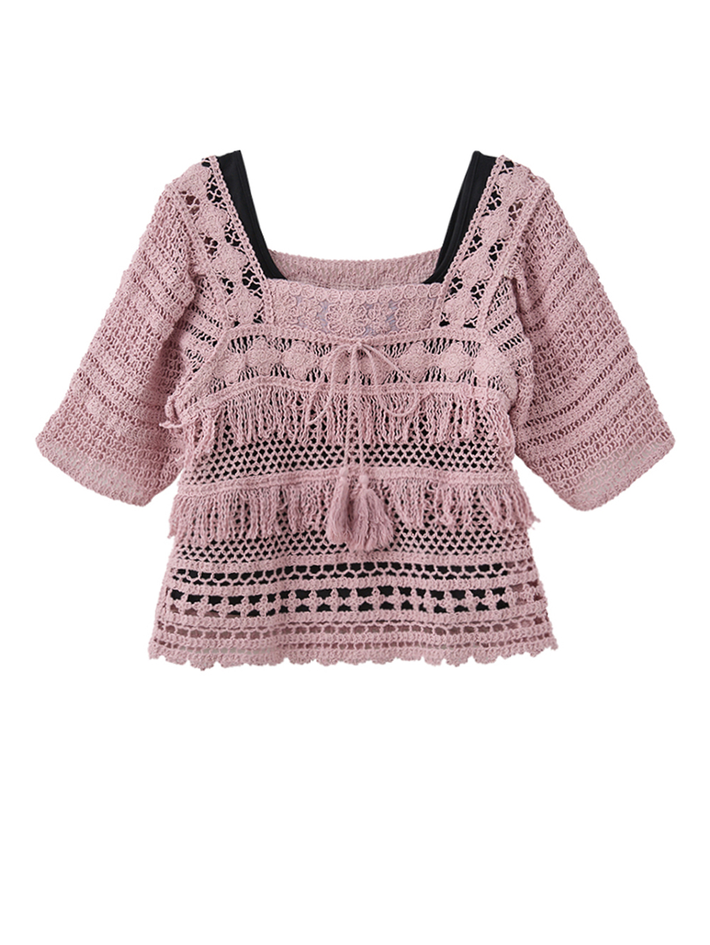 *甜美方領領口 *簍空緹花雷絲花紋 *胸前綁繩裝飾 *舒適棉質面料