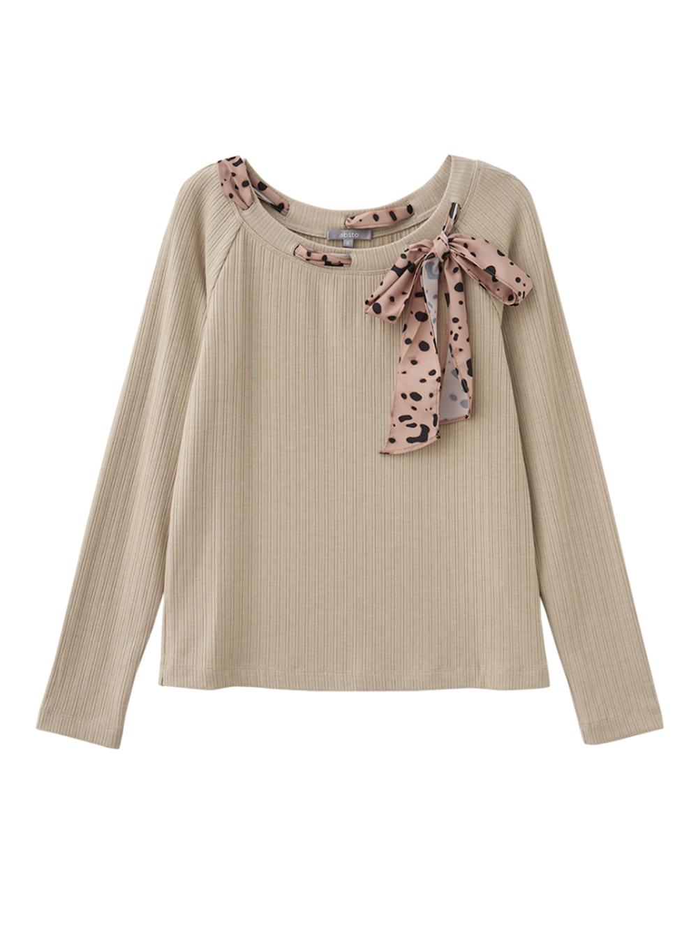*柔軟彈性面料 *領口搭配豹紋緞帶設計 *寬鬆領口剪裁 *休閒百搭上衣款