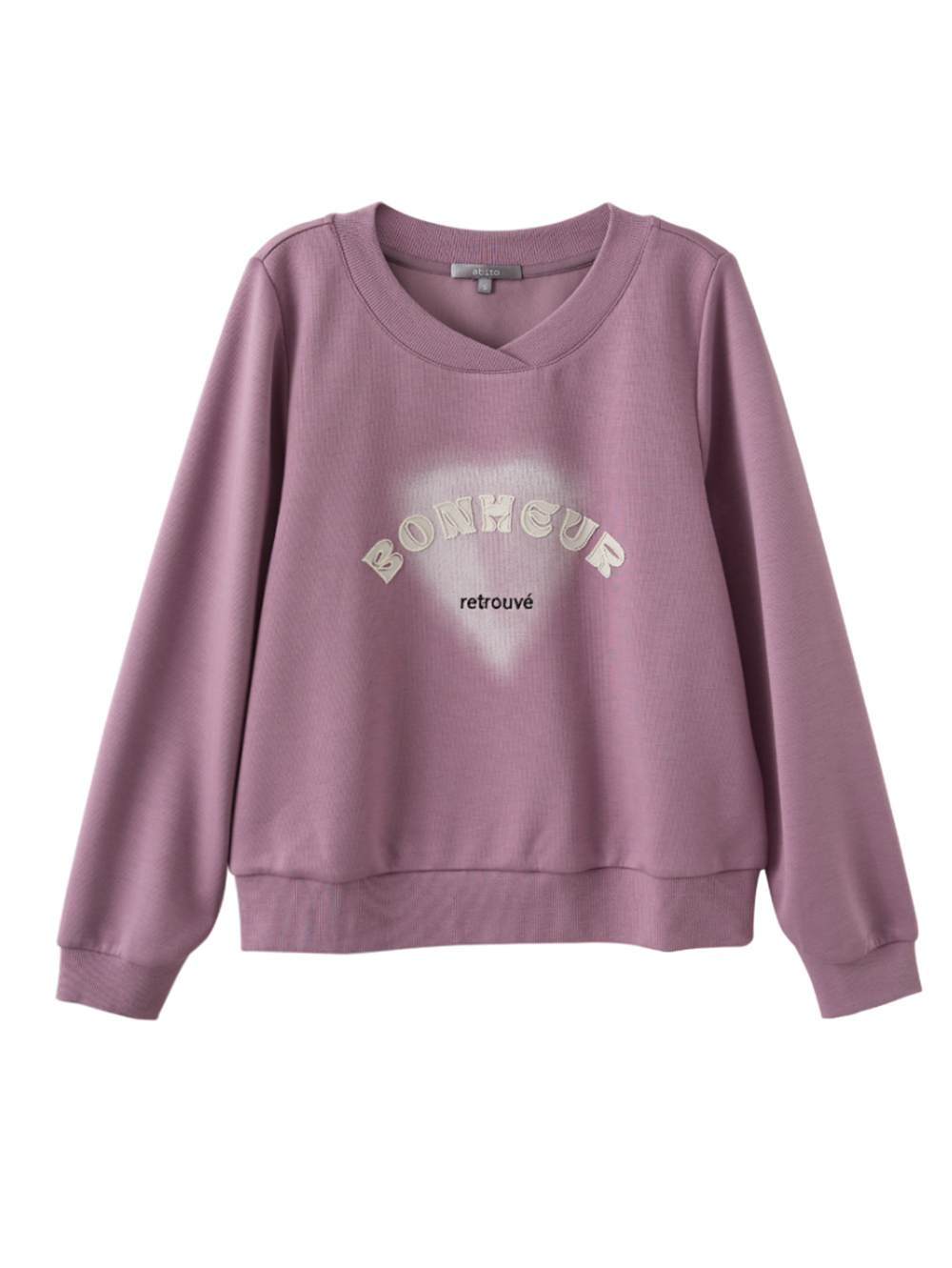 *噴墨愛心圖案 *電繡字母邊框細節 *特殊領口交疊設計 *拼接羅紋加彈性與耐用