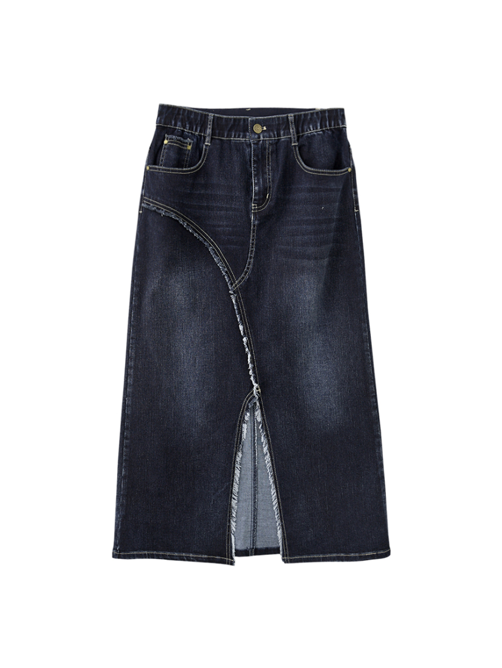 abito造型斜邊抽鬚牛仔裙