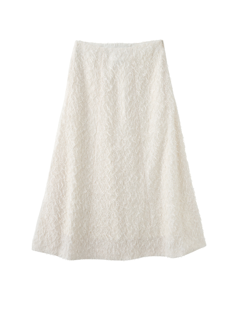 *蓬鬆長毛絨布料,飄逸柔軟 *A字版型,修飾臀部線條 *舒適內裡不刺膚 *可正式、可休閒,一件多風格
