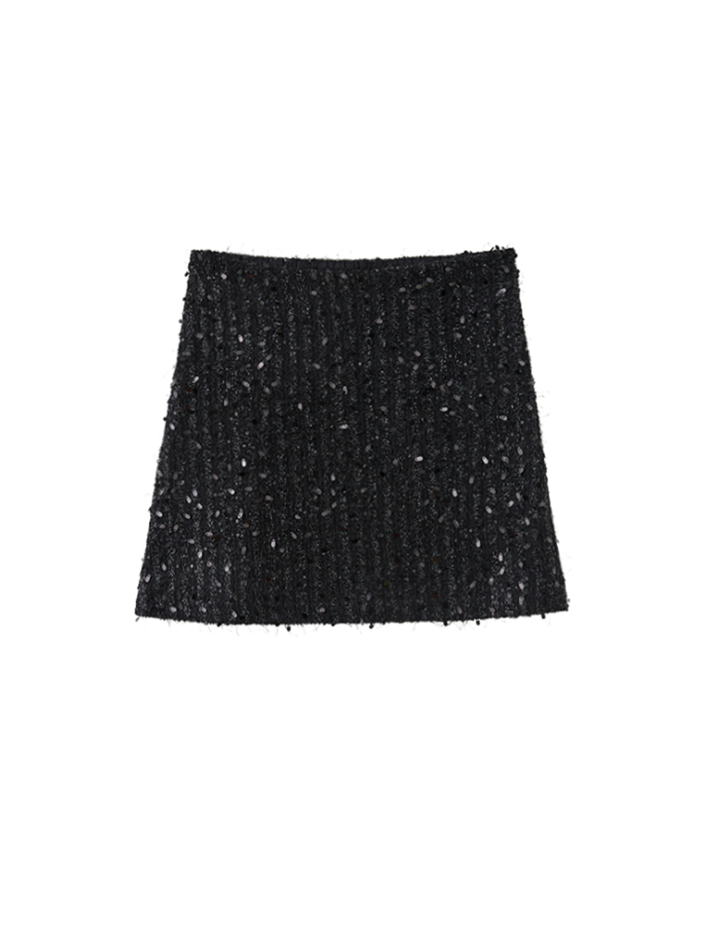 *精緻亮片造型細節 *A字版型,修飾臀部線條 *適合約會、節慶活動穿搭 *安全褲裡設計