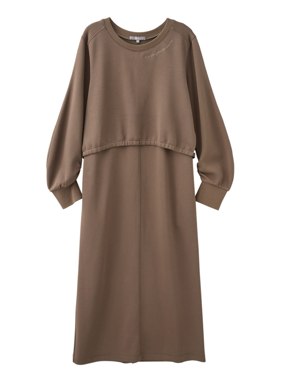 *刺繡文字造型細節 *衣身下擺抽繩設計,修飾腰線 *袖子側邊抽皺細節 *假兩件式洋裝版型