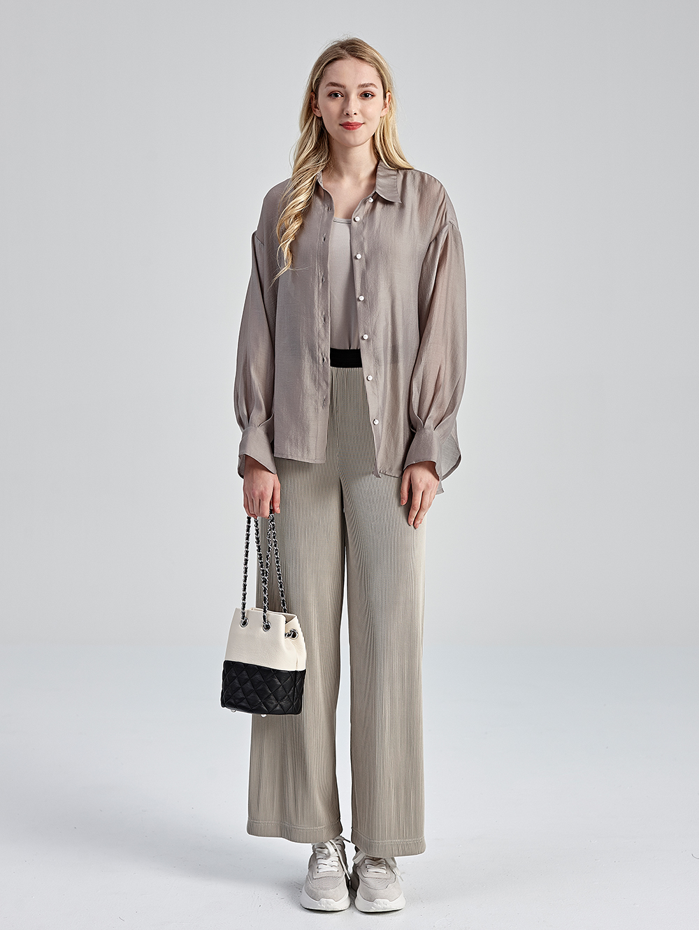 選用舒適感滿分的彈性坑條布料,休閒又修飾身形的剪裁與版型,再加上百搭的顏色,絕對是完成妳穿搭的好幫手。