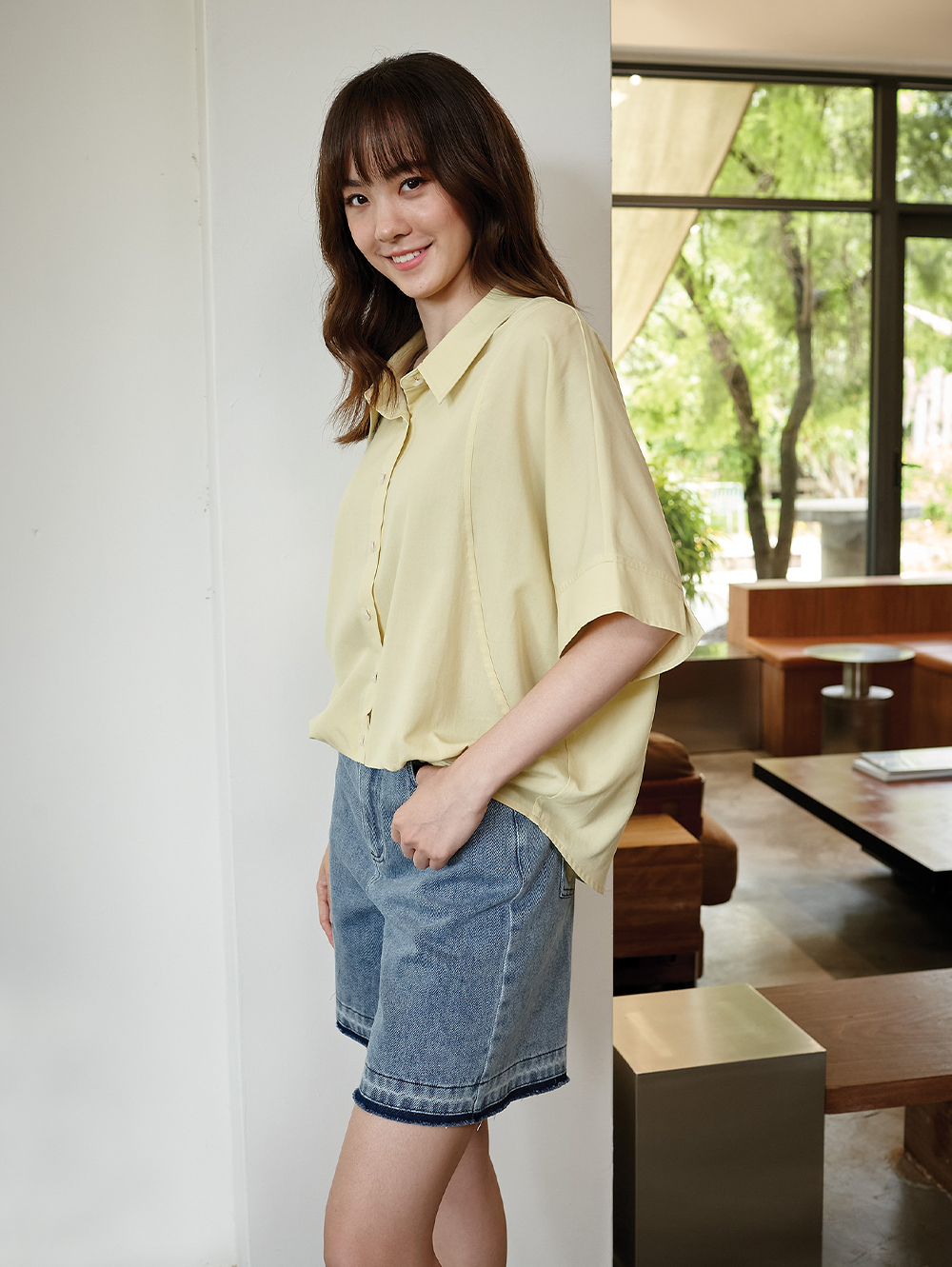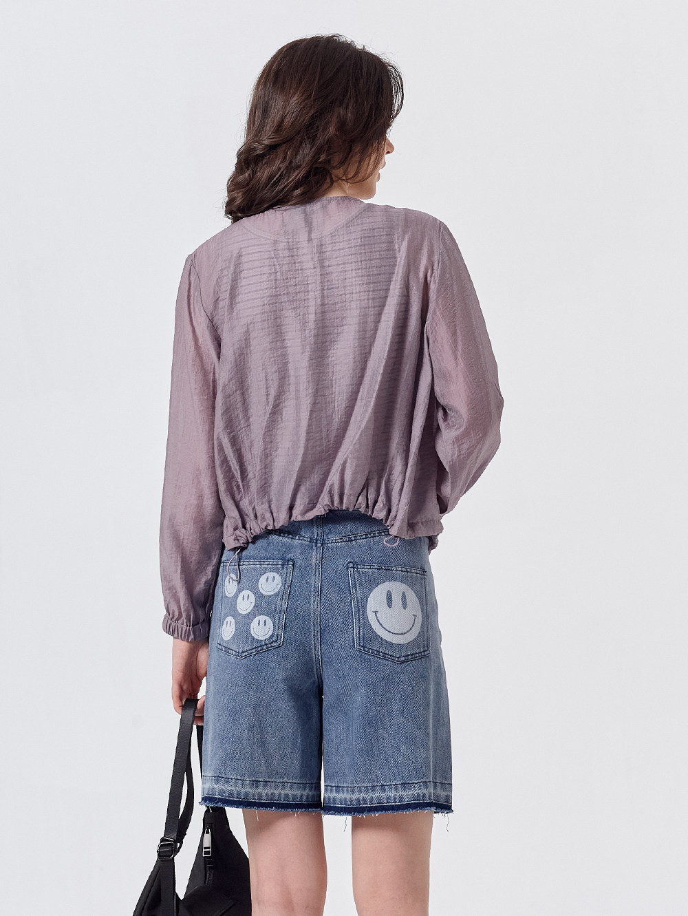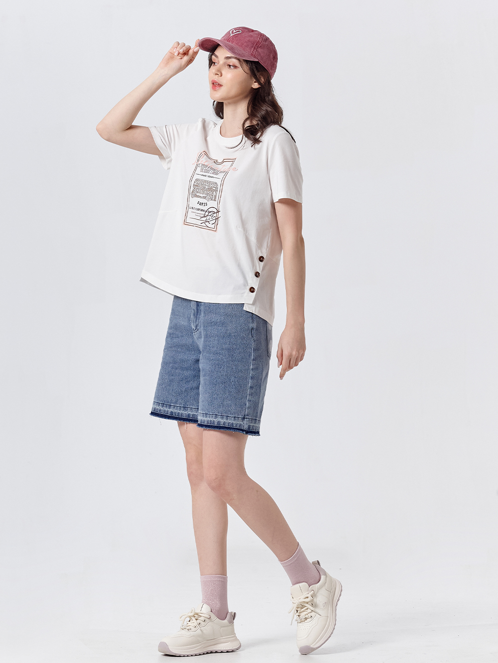 -基礎百搭身形 -後口袋低調微笑印花 -褲口鬚邊增添個性