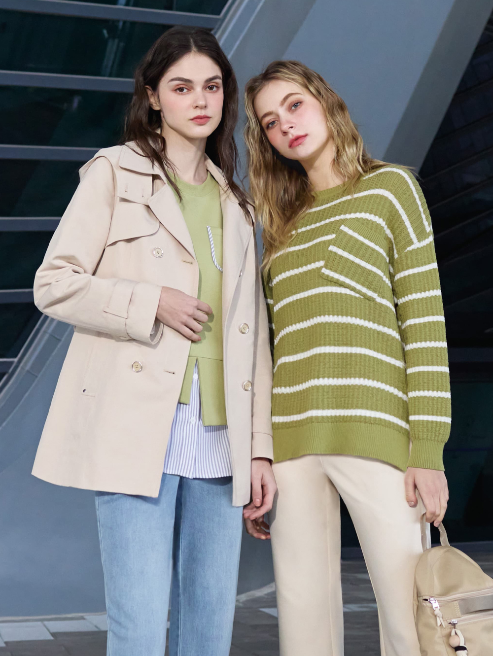 配色條紋襯衫布拼接, 中長版型可修飾臀部兩側線條。