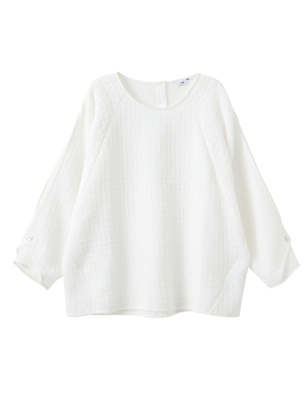 立體層次面料, 不易皺好整理, 雪紡拼接雙層造型袖, 輕盈微透膚展現優雅女人味。