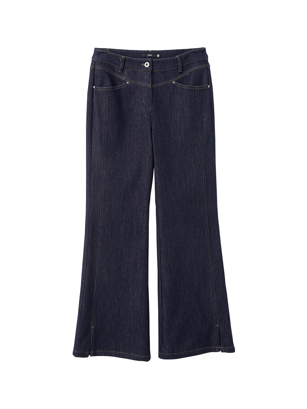腰下修身切線修飾腹臀線條, 喇叭褲型俐落顯瘦比例更修長。
