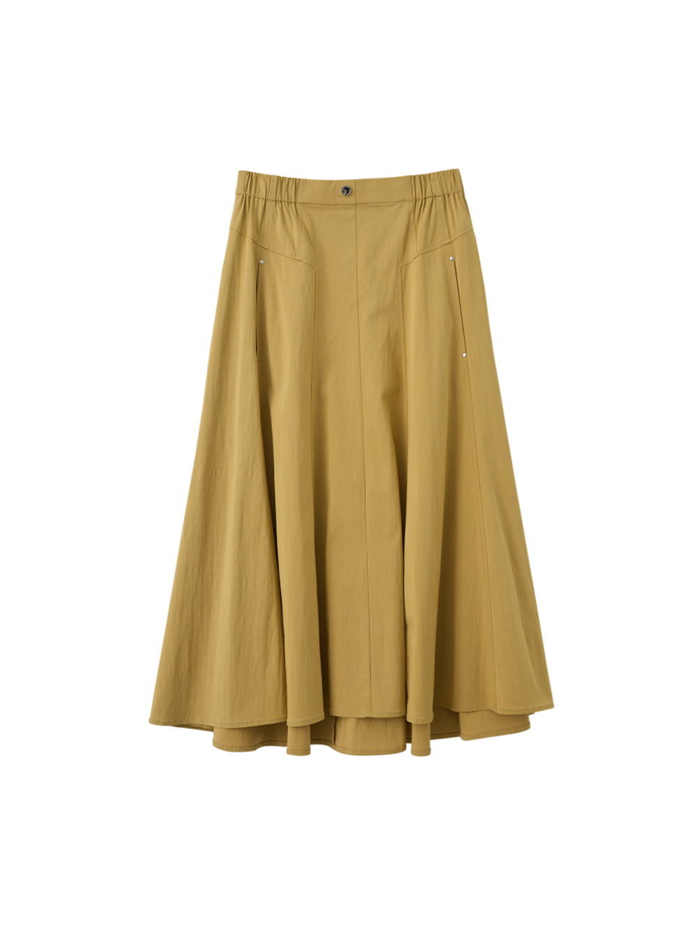 面料有彈性, 整圈鬆緊腰頭輕鬆套穿, 顯瘦修身八片裙, 可與同系列T恤做成套穿搭。