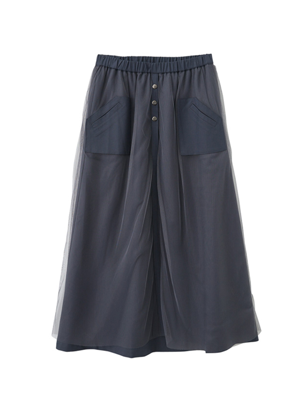 外層甜美網紗與個性工裝貼袋結合, 層次透視舉手投足都充滿酷甜律動感。