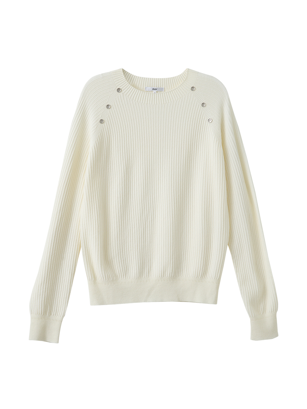 立體條紋組織, 親膚紗線, 順身不貼身版型超修飾, 金屬釦裝飾單穿也能展現簡約質感。