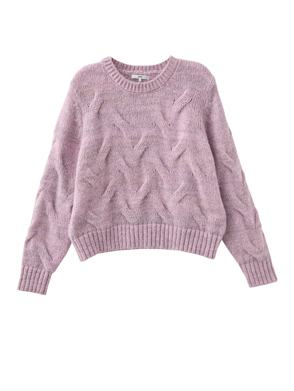 柔軟親膚的毛絨線紗, 加入細緻亮蔥, 呈現若隱若現的微光質感,。立體麻花增加層次感, 不僅保暖也更顯精緻。