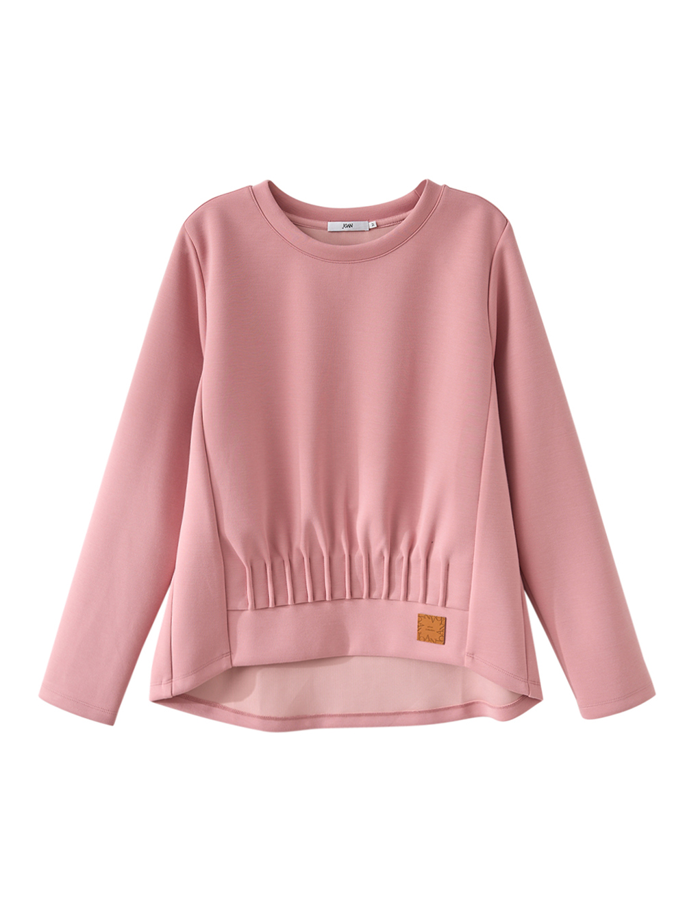 簡約圓領設計, 日常穿著輕鬆舒適, 腰部裡體抽摺設計, 收出腰線線條, 在寬鬆與修身之間取得恰到好處的平衡。