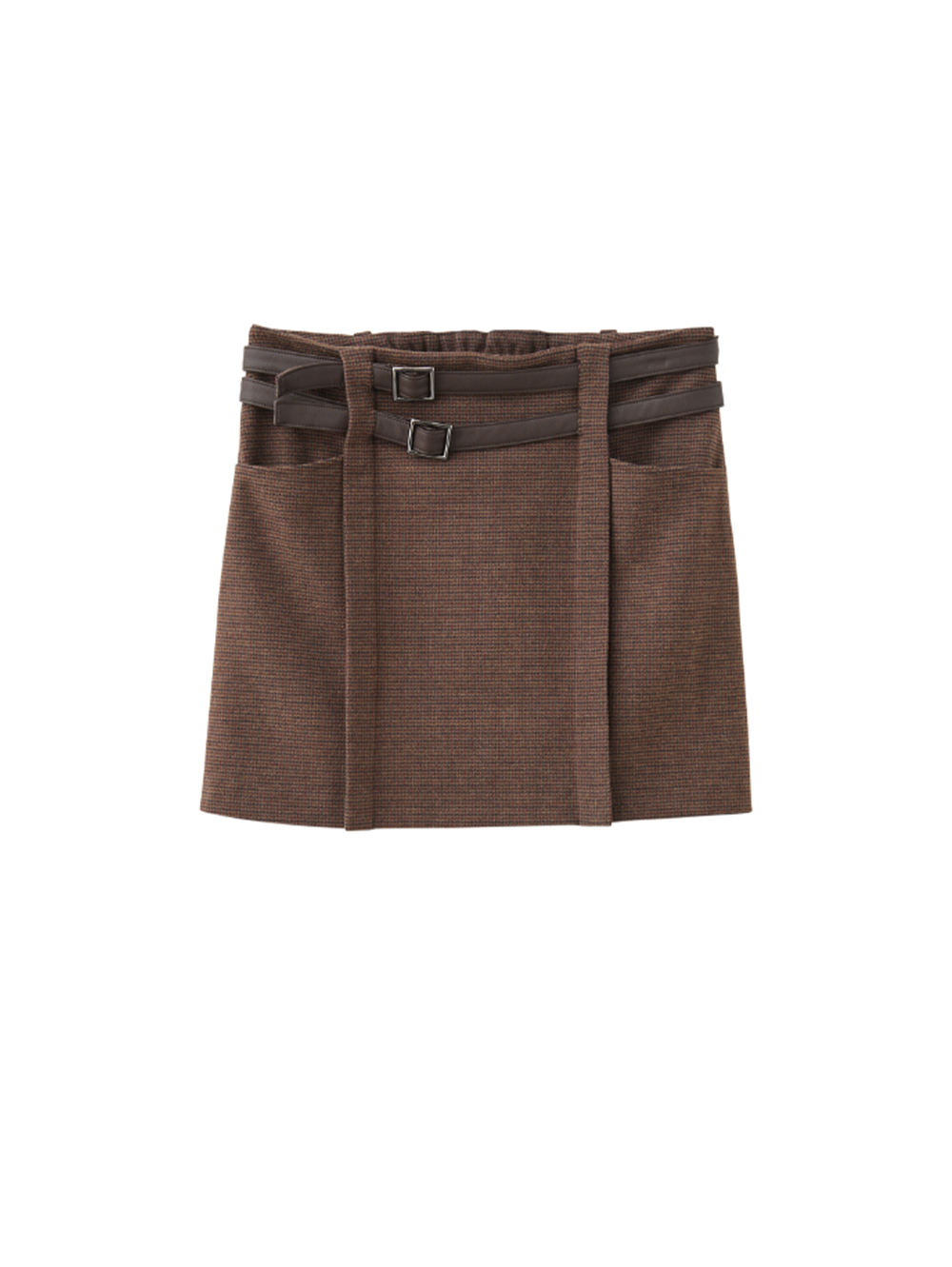 DENOVO雙皮帶細格紋A字短裙